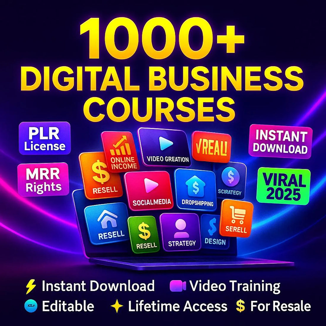 1000+ Business Video Courses Bundle, PLR & MRR License, Resell Rights, Editable, Instant Download, Digital Marketing, Dropshipping