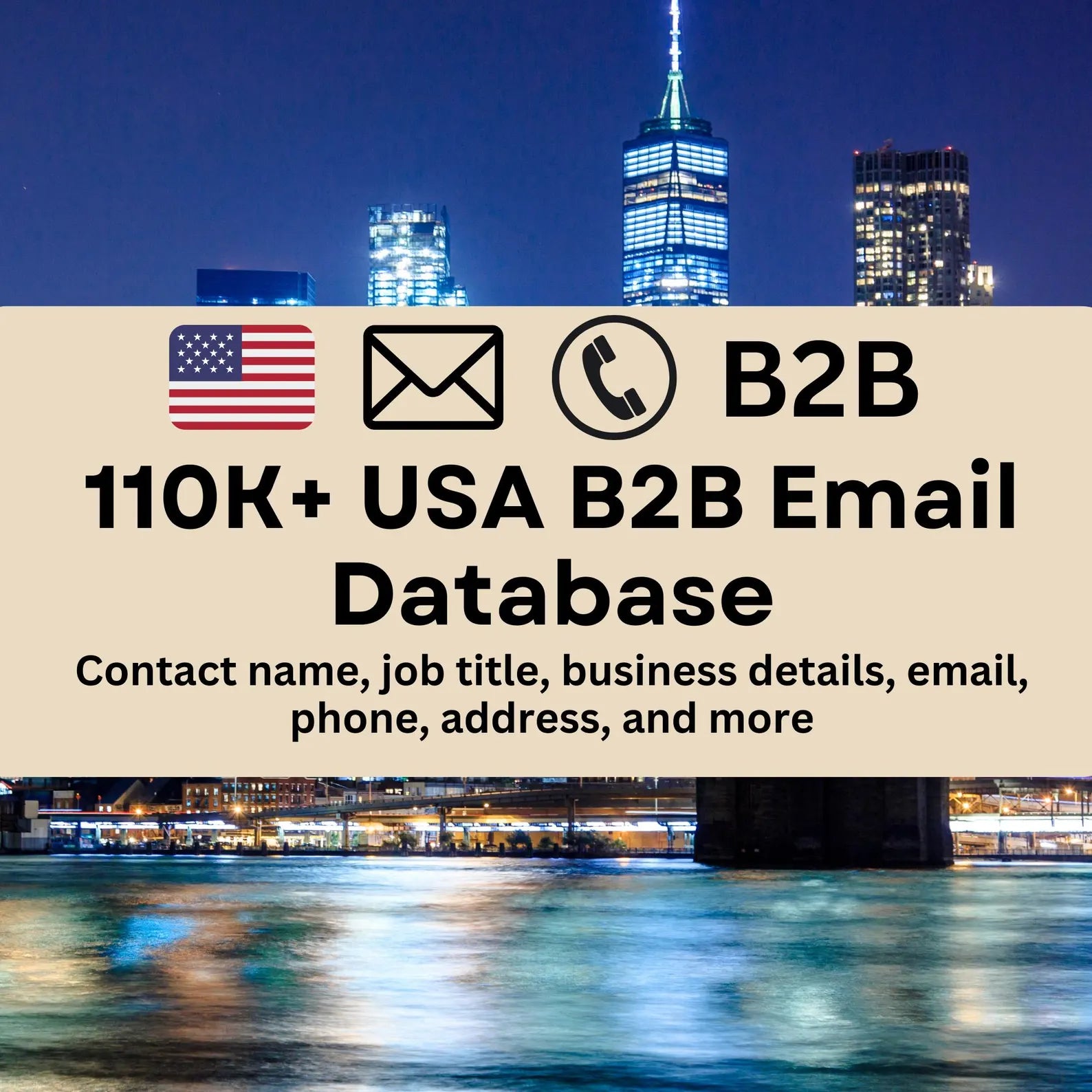 Expand your marketing reach with our premium USA B2B Email Database. This comprehensive database provides access to 110,000 verified business contacts across the United States, perfect for boosting your marketing campaigns and connecting directly with decision-makers.
