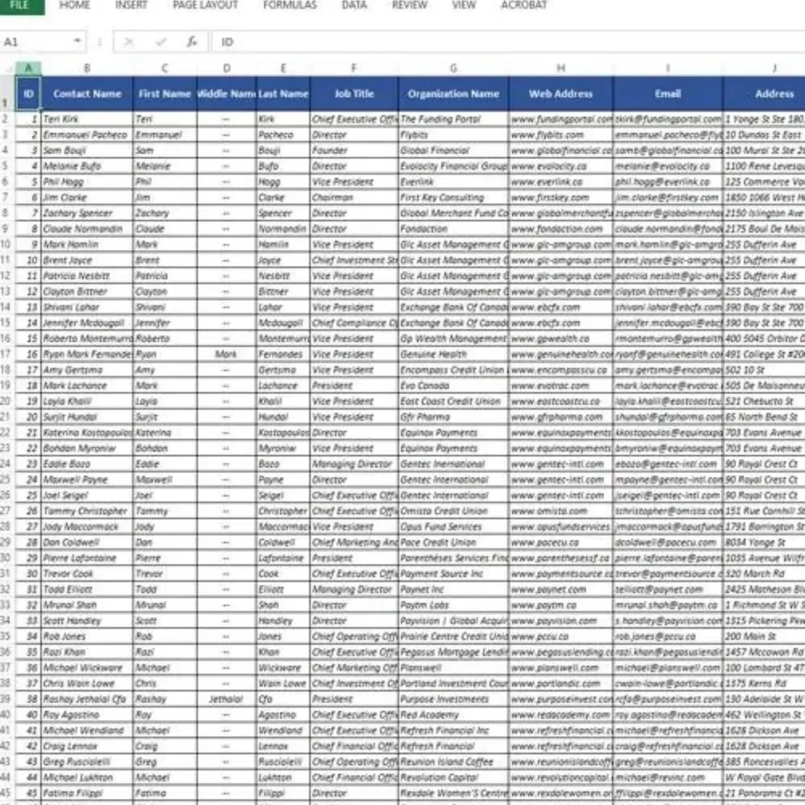 Data Fields Include: Company Name, Contact Name, Person Title, Email Address, Phone Number, Social Links, and more